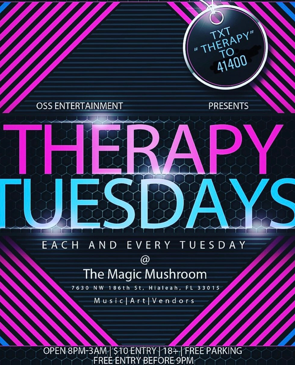 Every Tuesday and I mean EVERY Tuesday we have one of the dopest nights of the week, Therapy Tuesdays. This event depending on the week is 90’s music, R&B , Island Night or Cypher night along with a mix of live performances!